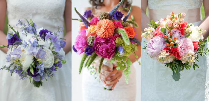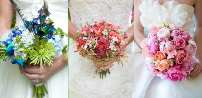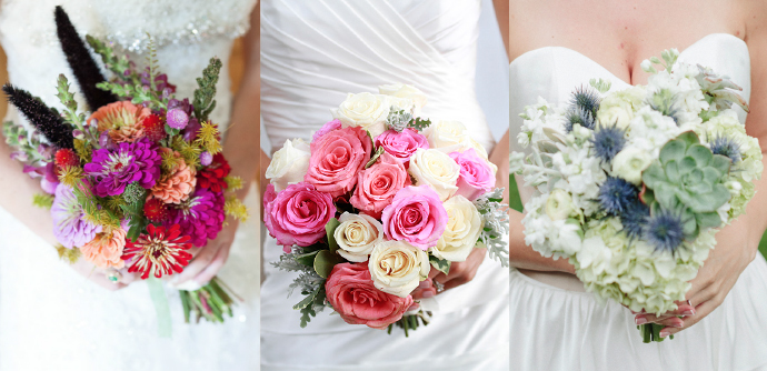 There are many different styles, types, and shapes of bridal bouquets. Look at the variations that local brides have chosen before deciding on the perfect arrangement for your wedding theme.