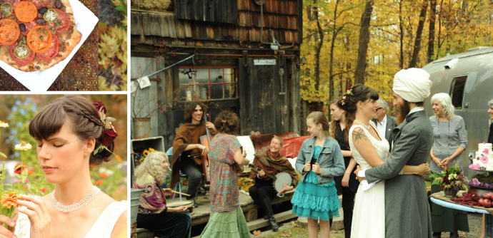 Kelly Merchant’s Wedding Inspiration: I really wanted to do a wedding that would show our potential clients the kind of wedding we can produce with our hive members. My inspiration always starts with the people I am photographing. Luis and Aemen are herbalists who own Pinecone Apothecary. They are sensitive dreamers and artists with a great respect for the land and tribal traditions. This is the kind of wedding I thought they would have—colorful, warm, lush, and natural.