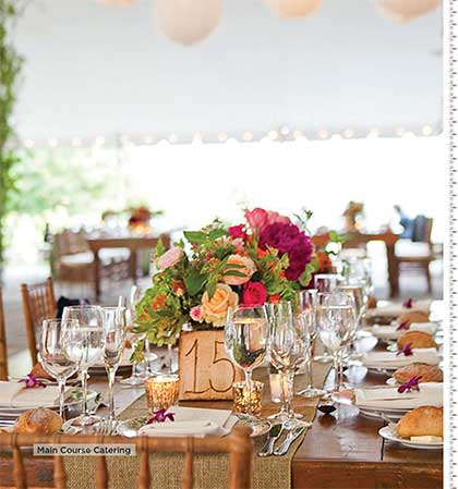 New Paltz, 845-255-2600, maincoursecatering.comMain Course is a full-service caterer who can coordinate all wedding aspects from customized menus, overall décor, linens, and coordination of tent and party rentals. A creative passion for food is the philosophy of Main Course Caterers. Under the innovative leadership of chef/owner, Bruce Kazan, his team of talented professionals creates the finest in catered events. Main Course, a leader in the sustainable food movement, uses small Hudson Valley purveyors to provide the freshest local organic produce, free-range poultry, line-caught fish, and hormone-free meats. With the bounty of the Hudson Valley as his inspiration, Chef Kazan creates unique menus, reflecting innovation and creativity.