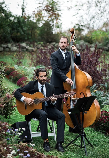 • Any songs you choose to include in your ceremony. Even if you’re not hiring a band, a solo vocalist, harpist, or chamber music trio can be a lovely touch here.