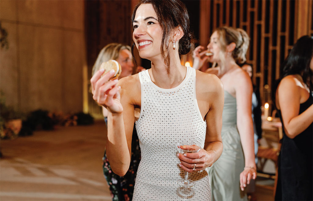 You don’t want to feel that way about a dress you dearly love! Enter the reception dress, one of many wedding hacks that sane couples have embraced. Your reception dress can show your loved ones your playful side, with a shorter hemline and easier fit, while keeping you feeling fabulous. A fine reception dress can also—unlike most bridal gowns—become a centerpiece of your special-occasion or night-on-the-town wardrobe.