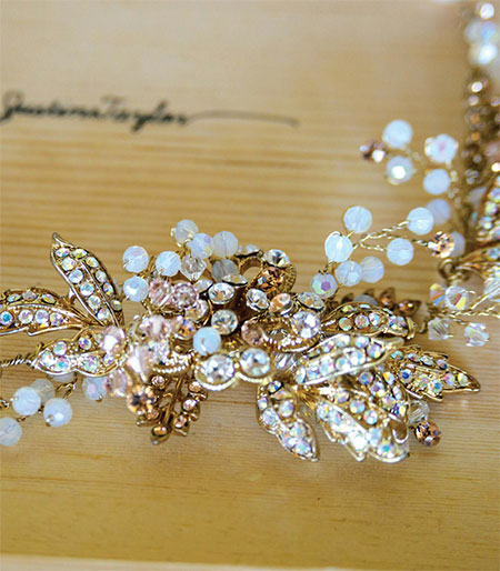 Consider a crown adorned with seashells, flowers, pearls, or an heirloom brooch. A recent trend we love is for couples to loosely match their accessories, with, say, a crown of seashells for one and a seashell lapel pin for the other. Or consider matched bracelets or neckwear. The concept nicely underlines the point of the entire day.