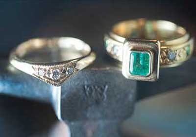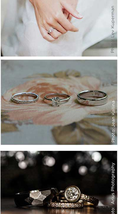 A word about platinum: yes, it’s lovely . . . and expensive. Platinum is about five times more rare than gold, very pure and strong, and considered by some to be the ultimate love token. If you can afford platinum, have at it. But even then, you may find some of other possibilities alluring. Palladium is a white metal that’s also more rare than gold but a tad less expensive than platinum. If your heart is set on white metal, palladium might be for you. Still another choice is titanium. As the name implies, it’s very strong, and it weighs only a third of what gold does. Titanium is hypoallergenic, inexpensive, and a good choice of raw material if you crave an original design. Consider titanium if you’d rather put your money into the creative side of things.