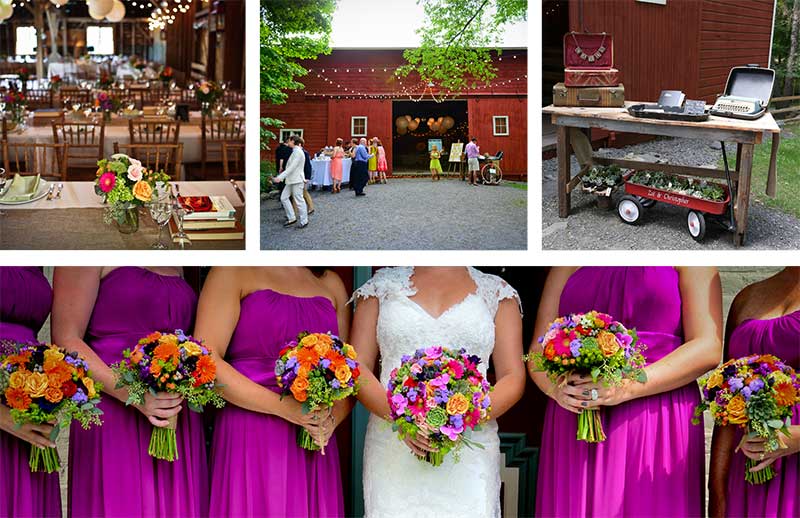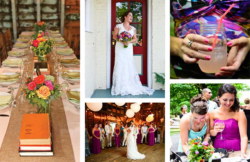 In a stunning and colorful wedding inspired by their love of literature and fun, Zoe and Christopher seamlessly infused class and elegance with rustic DIY touches. The celebration took place at Shadowlawn in High Falls, complete with a restored 19th-century barn and bonfire with s’mores to top off their perfect day.