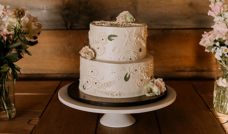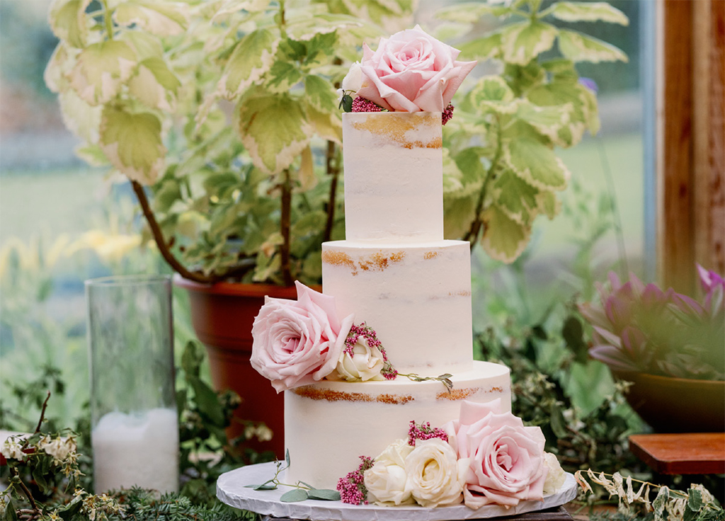 Visually, cakes are moving away from stark white finishes. Soft natural tones, gentle texture, and restrained detailing allow cakes to feel romantic without being overly formal. This style feels especially at home in historic inns, barns, estates, and outdoor venues throughout the region.