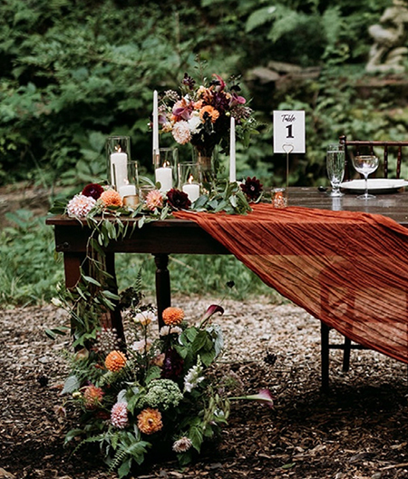 Floral design is increasingly shaped by venue and environment. Garden estates call for loose, romantic arrangements that echo what’s growing nearby. Farms and orchards lean into meadow-like textures and organic movement. Mountain and forest settings favor grounded palettes, layered greens, and designs that feel intentional but not fussy.
