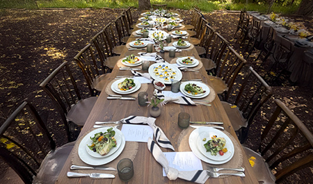 Our exceptional staff goes beyond what is expected to make your day the best day! We serve our food on cast-iron and vintage silver platters and plates, ensuring your event never feels like an industrial production line. Our goal is to create a wildly beautiful and delicious experience that blends with the nature around us. Our ingredients are made by folks and farmers who love what they do, and Chef Deanna is convinced that matters
